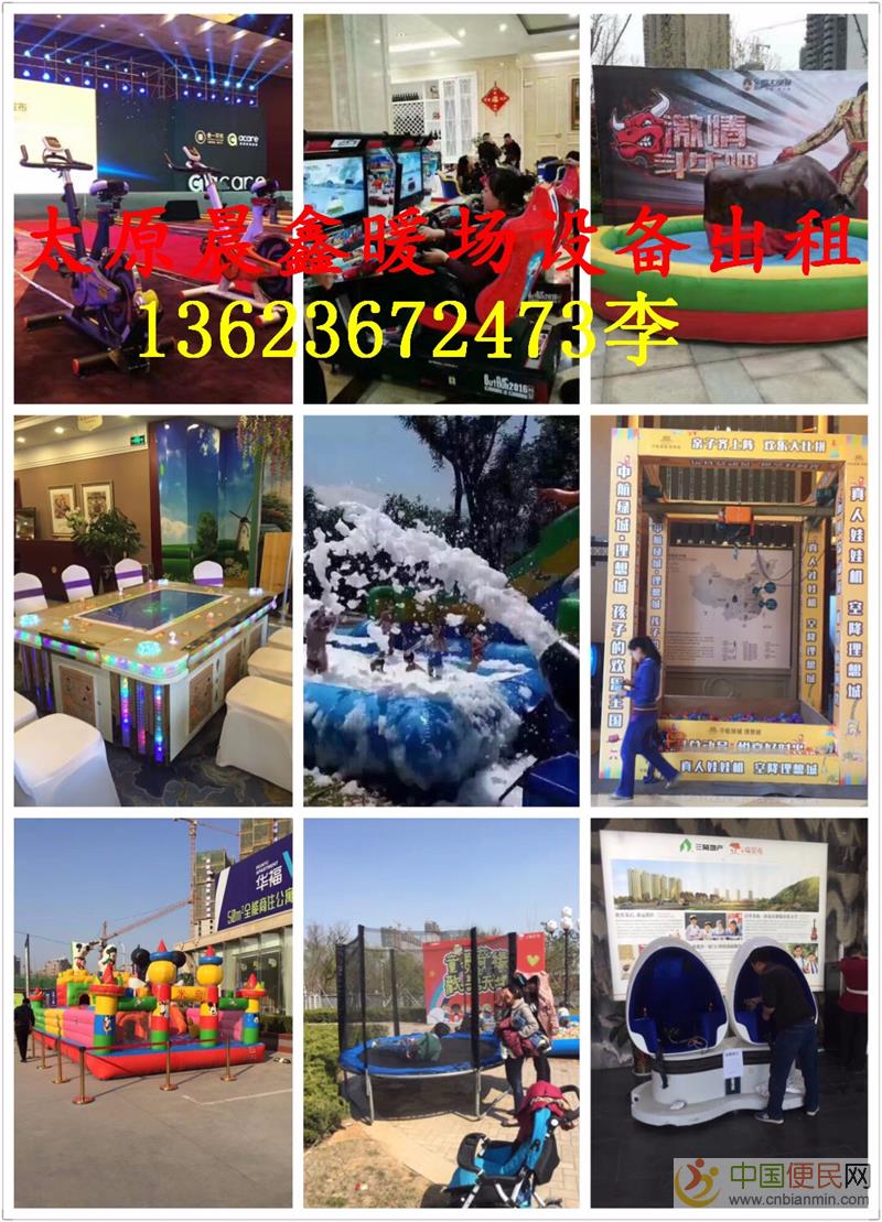 本公司低价出租充气城堡,充气迷宫,充气攀岩,儿童滑梯,旋转木马,体感游戏,儿童挖掘机,拳击机,大力锤,液晶格斗机等,是一家实力雄厚人力资源丰富的游乐设备用品综合性大型租赁公司,长期服务于山西省内各地市房地产开盘暖场活动,汽车展销上市仪式,大型展览展示会议活动以及省内大型节会庙会庆祝活动等等,所拥有的设备及人力资源可同时承接不同地域不同场次的c n b i a n m i n c o m十中_国_便_民_网几场综合类活动,并保证活动的完美进行。欢迎新老客户咨询洽谈,微信同号。中.国.便.民.网cnbianmin.com